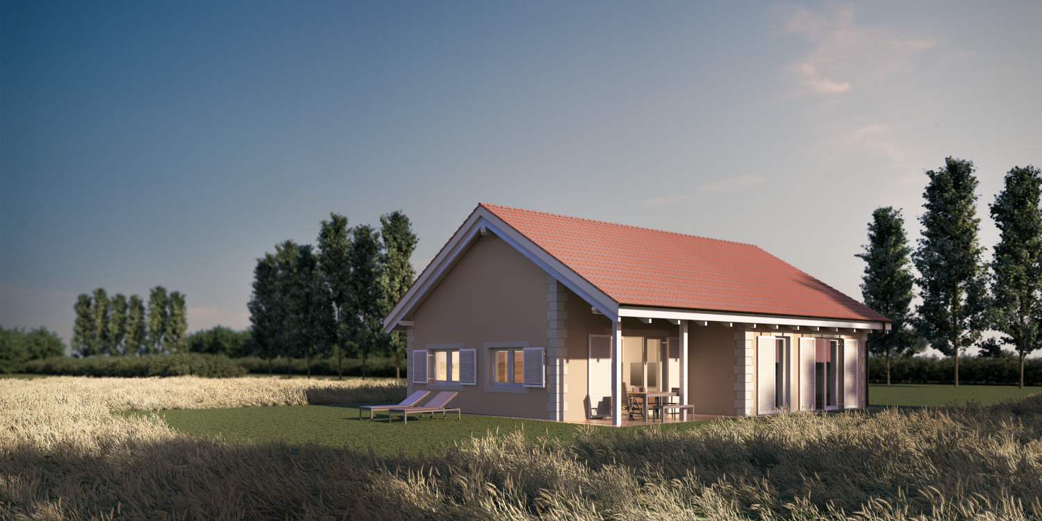 Racionalno zasnovan, odprt bivalni del se odpira na pokrito teraso. Poleg tehničnega prostora, kopalnice in spalnice z garderobo, ima objekt znotraj toplotnega ovoja tudi manjšo hobi delavnico ali kabinet, kot prostor za posameznikov umik.